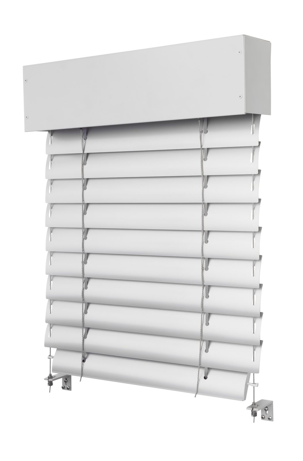 Az F80 kültéri zsaluziák C alakba hengerelt peremezetlen lamellákból készülnek. Lapos lamelláinak és kétoldali billenthetőségének köszönhetően felhúzott állapotban kevés helyet igényelnek, így közkedveltek családi házak és irodaépületek árnyékolásához egyaránt.