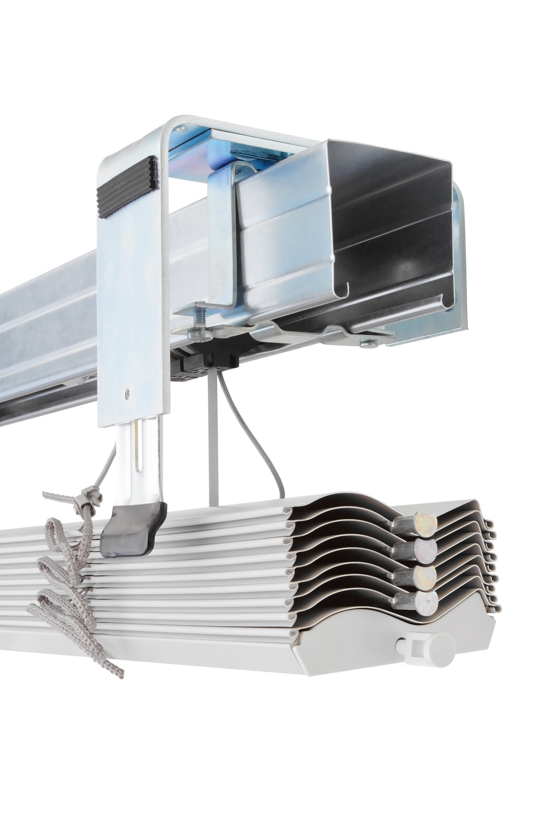 Az S alakba hengerelt lamellák biztosítják a lamellák ideális öszszecsukódását, és a tömítő gumiknak köszönhetően csendes a működése.